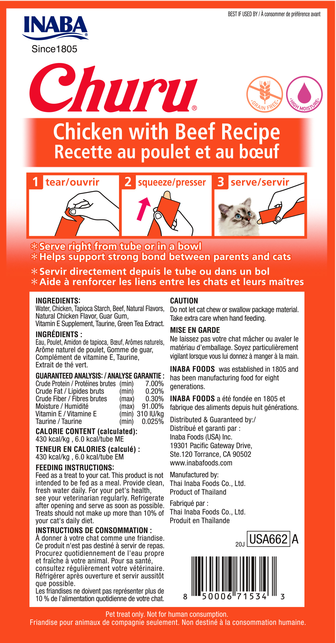 Churu Pollo con Carne (paquete conteniendo 4 tubitos)