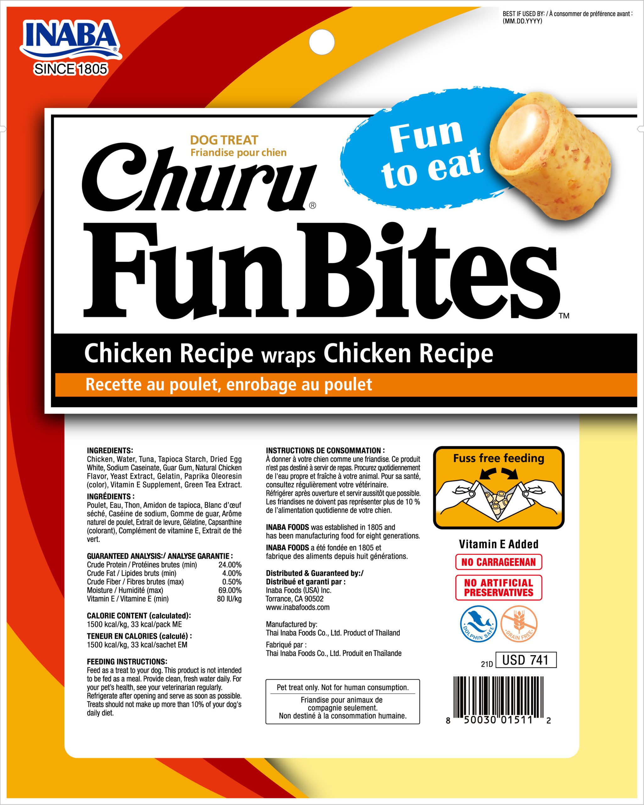 Churu Fun Bites Pollo – Perro es un snack para perro , 100% natural en forma de pequeños bocaditos suaves en forma de almohada, con un relleno Creamy Churu en el interior. Elaborado con sabores naturales, extracto de té verde, taurina y vitamina E.