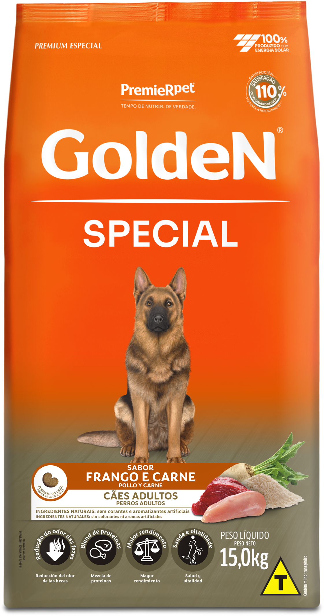 GoldeN® Special Perros Adultos es un alimento completo y equilibrado que le proporciona a los perros adultos el nivel ideal de todos los ingredientes que necesitan para una vida larga y saludable.