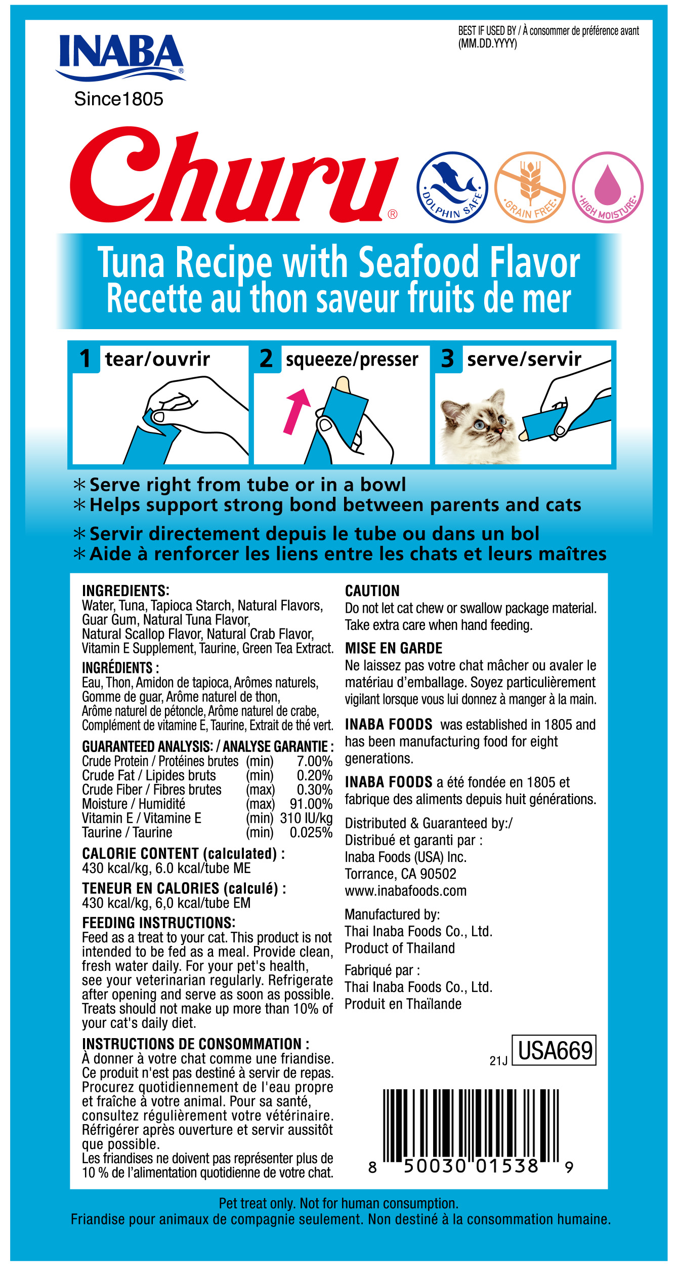 | Ingredientes | Agua, atún, marisco, sabores naturales, Goma guara, bonito ahumado, suplemento de vitamina E, taurina y extracto de té verde |