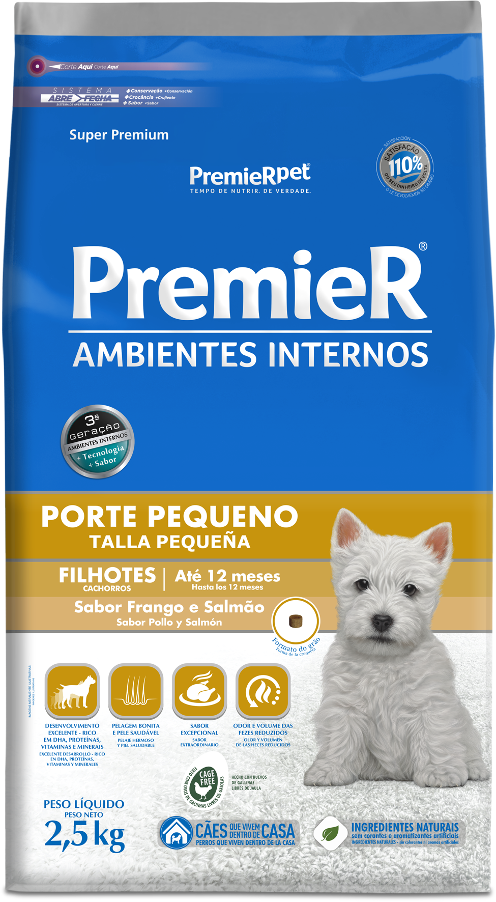 Premier Ambientes Interiores Perros Cachorros es el primer alimento súper premium específico para cachorros con este estilo de vida.
