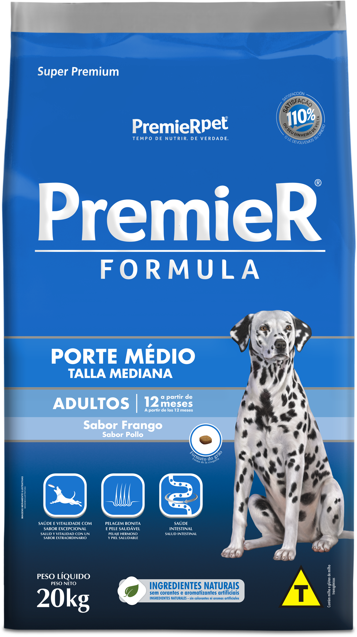PremieR® Formula Perros Adultos Porte Mediano Sabor Pollo es el primer alimento Super Premium fabricado en Brasil, es científicamente formulado según el concepto de Nutrición Óptima, conteniendo solamente ingredientes nobles y seleccionados bajo estricto control de calidad, garantizando un alimento mucho más nutritivo y sabroso.