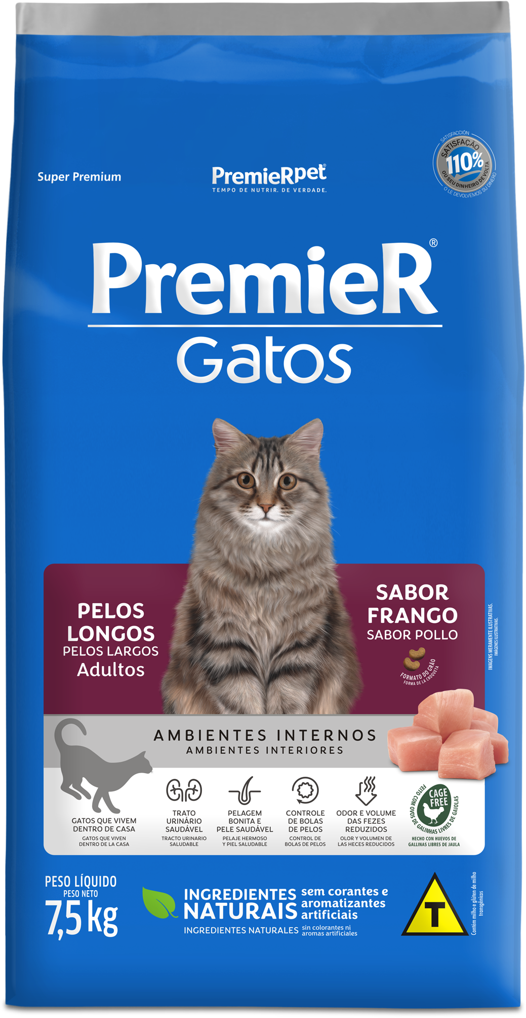 PremieR Gatos Pelos Largos Adultos Pollo ofrece a su gato adulto de pelo largo un cuidado especial todos los días. Gracias a una combinación de ingredientes nobles, realza la belleza del pelaje, dejándolo exuberante y suave. Sin embargo, estos pelos densos pueden predisponer a la formación de las «bolas de pelo». Estas son el resultado de la acumulación de pelo en el tracto digestivo debido al hábito de lamerse de los felinos. PremieR Gatos Pelos Largos Adultos Pollo incluye en su fórmula fibras seleccionadas como la avena y pulpa de remolacha, que previenen la formación de esas indeseables «bolas de pelo».