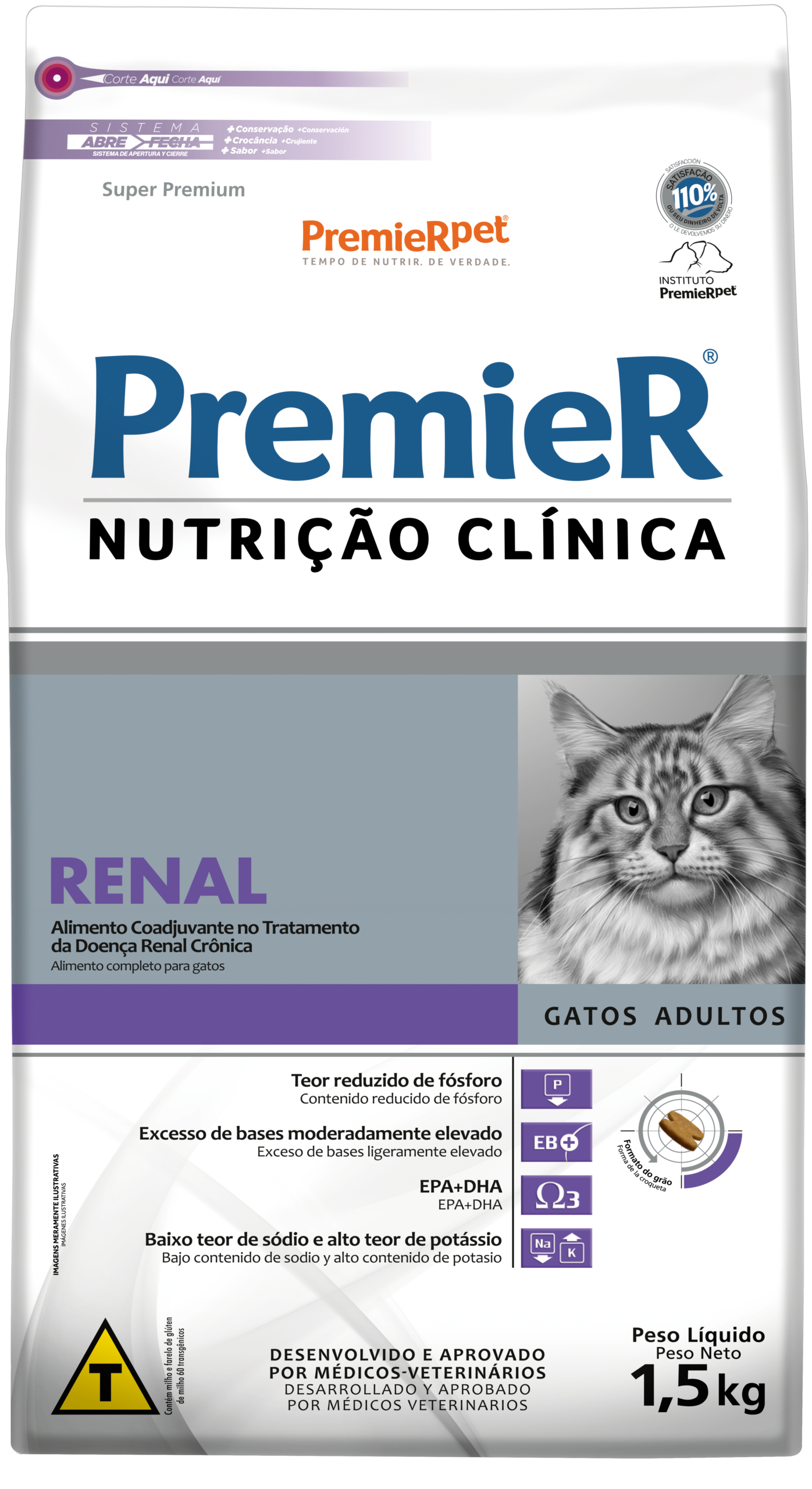 PremieR Nutrición Clínica Gatos Renal es un alimento súper premium que ayuda en el tratamiento de la enfermedad renal crónica de los gatos.